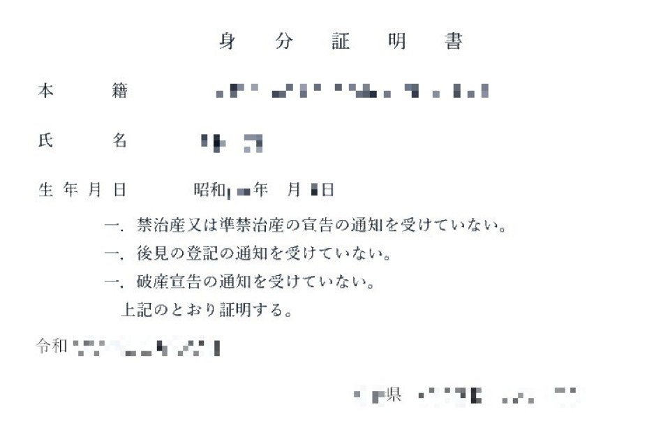 このため、いま本籍地の市区町村役場で身分証明書を取得した場合、破産宣告や破産手続開始決定の通知を受けていないことの証明と、2000年3月31日までに禁治産または準禁治産宣告の通知を受けていない、後見登記の通知を受けていないことの証明についての証明書となります。